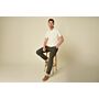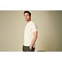 The organic cotton jersey is dyed and washed before the garment is made, resulting in a softer fabric with a vintage effect. It also ensures better measurement and quality control.