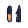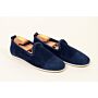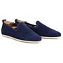 Made from navy water-repellent suede calf leather, finished with tonal calf leather piping. Its thin rubber sole provides flexibility and everyday comfort.