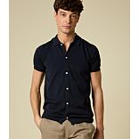 Shirt-style polo in 100% cotton knit, short sleeves – Slim Fit
