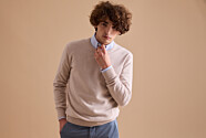Suitable for any season, Conan men's pullover is a crew neck knitted with pure two-ply lambswool. It is available in a nice range of colors. Ribbed band finish at collar, cuffs and base.