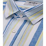 A contemporary men's linen and cotton shirt with a French collar, perfect for a casual outfit with chino pants or Bermuda shorts.