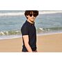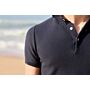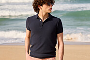 Confeccionado en corte entallado en un ligero punto 100% algodón peinado de 240 g/m² para un look de vestir. Cuello de punto plano y tapeta de un solo botón, cierre con 3 botones. Acabado de canalé en cuello, puños y bajo.