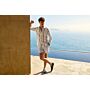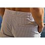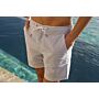 Hecho con un tejido seersucker de secado rápido con un 60% poliamida y 40% algodón, este traje de baño hombre tiene 2 bolsillos laterales y 1 bolsillo trasero tipo parche con cierre de velcro y bordados del mismo color.