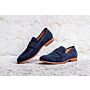 Realizada en costura Blake y terciopelo impermeable sobre una suela de cuero, con virajes de cuero, puede llevarse de forma clásica o muy moderna.