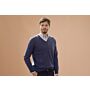 Ideal para cualquier estación, Elian es un jersey de hombre con cuello en V y corte estándar tejido en lana de cordero de doble hilo. Está disponible en una amplia gama de colores. Acabados acanalados en el cuello, los puños y la base.
