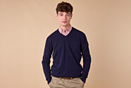 Ideal para cualquier estación, Elian es un jersey de hombre con cuello en V y corte estándar tejido en lana de cordero de doble hilo. Está disponible en una amplia gama de colores. Acabados acanalados en el cuello, los puños y la base.