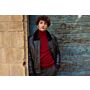 2 bolsillos verticales, 1 bolsillo de parche con botón de presión y cremallera en el brazo izquierdo. Acabado acanalado tono sobre tono de las mangas.