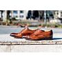Fabricado con una construcción Blake y becerro de curtición italiano patinado a la mano sobre una suela de cuero, sin vira. Un accessorio perfecto para combinar con una tenida clásica. Ojales invisibles y cordones redondos encerados de algodón tono sobre tono.