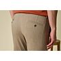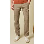 El chino Keryll está confeccionado en un tejido con motivo chevron que combina algodón y lino, con un acabado lavado. Este modelo presenta un corte ajustado sin quedar demasiado ceñido al cuerpo.