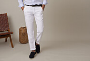 El chino Kylson está hecho de sarga de lino 100% con un acabado lavado.