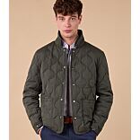 Acolchado en forma de ondas. Interior del cuello y ribetes de bolsillos interiores en pana al tono.