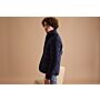 Corte ajustado con botones de imitación de cuerno. Cuello alto ligeramente acolchado con aplicación de piel auténtica.