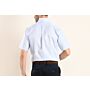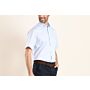 La camisa de manga corta Patrick en azul palo está hecha de tejido Oxford de 100 % algodón de doble hilo de 120 g/m², con un acabado suave al tacto.