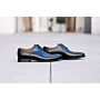 Fabricado con una construcción Blake y becerro boxcalf italiano patinado a mano sobre una suela de cuero, con vira de piel. Este modelo quedará elegante en todas las circunstancias.