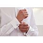 La camisa de hombre Pietro en blanco con gemelos está hecha de popelina 100 % algodón de doble hilo de 115 g/m², con un acabado suave al tacto.
