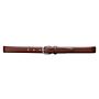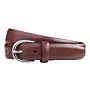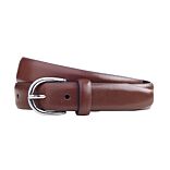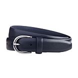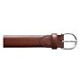 Cinturón de cuero con forro de piel de vacuno, abrochado por una hebilla redonda de latón macizo niquelado, con trabilla de cuero sin coser.