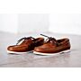El Trawler es un mocasín náutico de hombre. Un zapato indispensable hecho en forma de mocasín integral sobre una suela ligera y resistente de caucho, con cordones que rodean el pie, guiados por ojales de latón.