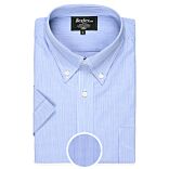 La camisa de hombre de manga corta Trent en azul océano y blanco está hecha de popelina de 100 % algodón de doble hilo de 105 g/m², con un acabado suave al tacto.