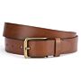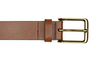 Cinturón de piel de vaca con curtición natural, con cierre de hebilla cuadrada de latón macizo niquelado, con una trabilla de cuero.