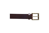 Cinturón de cuero con hebilla cuadrada de latón macizo y trabilla de cuero.