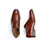 Grackley shows its difference with its elegant and ambitious last. The cuts of the upper of this oxford shoe are bringing a real dandy attitude. Blake welted with calf leather with hand patine on a leather outsole with pad and with welt. Invisible eyelets and tone on tone round waxed cotton laces.