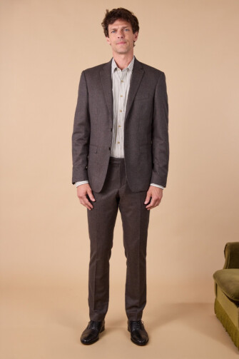 Men's Chocolate Melange Suit Trousers - LAZARE - Adjusted Fit - Flannel 100% 2 ply Virgin Wool