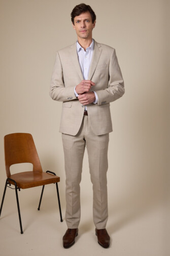 Men's Beige Melange Suit Jacket - LAZARE - Adjusted Fit - 100% 2 ply Virgin wool
