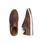 Sheep leather and suede applications, back counter and side decoration. Mesh fabric inside tongue. Invisible eyelets, flat cotton waxed laces and cow leather removable insock.