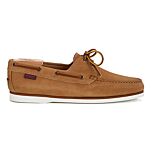 Trawler is a traditional boat shoe. A must have shoe made in full mocassin construction on a ligthweight and resistant rubber sole, with a turning lace all around the ankle guided by solid brass eyelets.