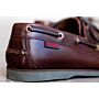 Trawler is a traditional boat shoe. A must have shoe made in full mocassin construction on a ligthweight and resistant rubber sole, with a turning lace all around the ankle guided by solid brass eyelets.