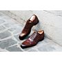 Tremezzo patin shows its difference with its elegant and ambitious last. The cuts of the upper of this oxford shoe are bringing a real dandy attitude. Blake welted with aniline boxcalf on a leather outsole with rubber pad, with welt. Invisible eyelets and tone on tone round waxed cotton laces.
