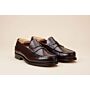 Blake welted on cow leather on leather outsole, with leather welt. Apron, inlay and back counter are handsewn.